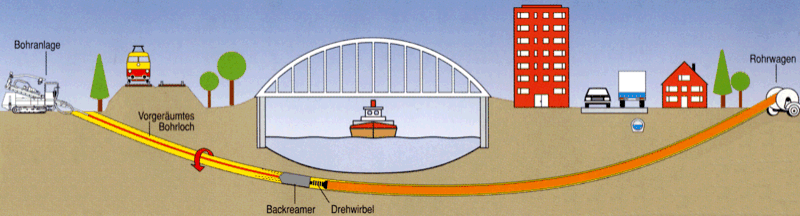 Die steuerbare Horizontalbohrtechnik kommt dort zum Einsatz, wo Bauwerke, Gebäude, Gewässer oder spezielle Geländeoberflächen (z. B. Naturschutzgebiete, Start- und Landebahnen von Flughäfen, Gleisanlagen usw.) unterquert werden sollen und die Erdarbeiten somit auf ein absolutes Minimum beschränkt werden müssen.