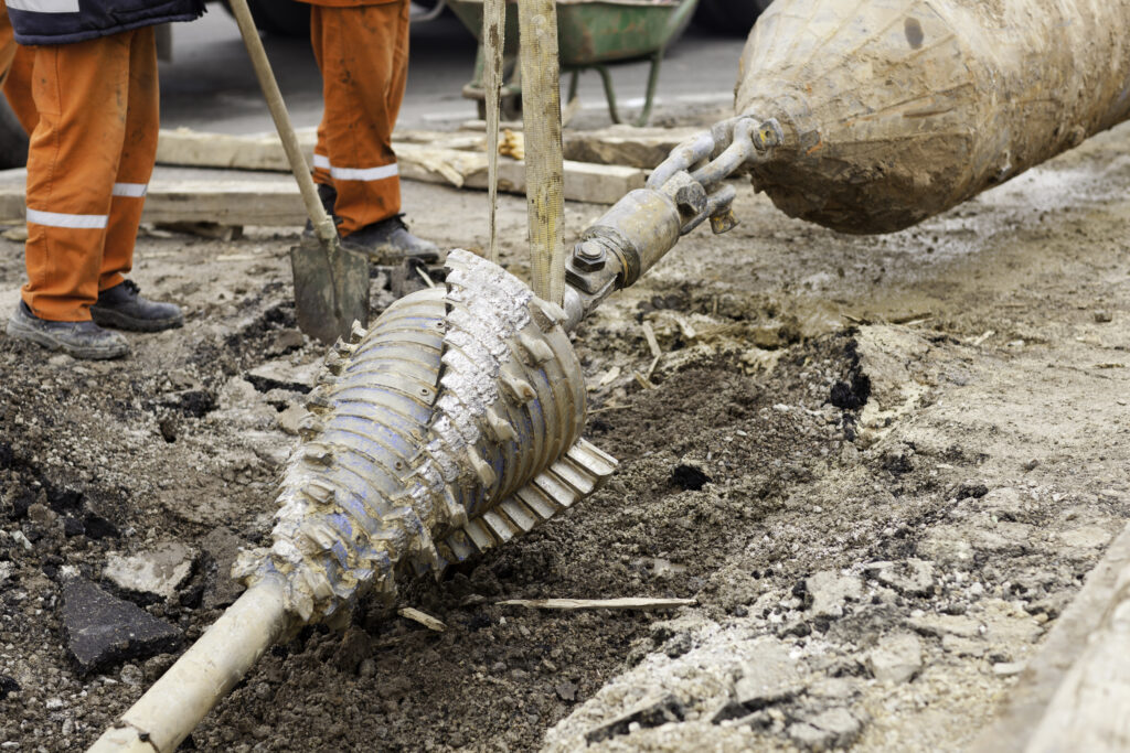 3. Nach dem letzten Aufweitvorgang wird das Rohr befestigt und durch Zurückziehen des Gestänges in den Bohrkanal geführt.