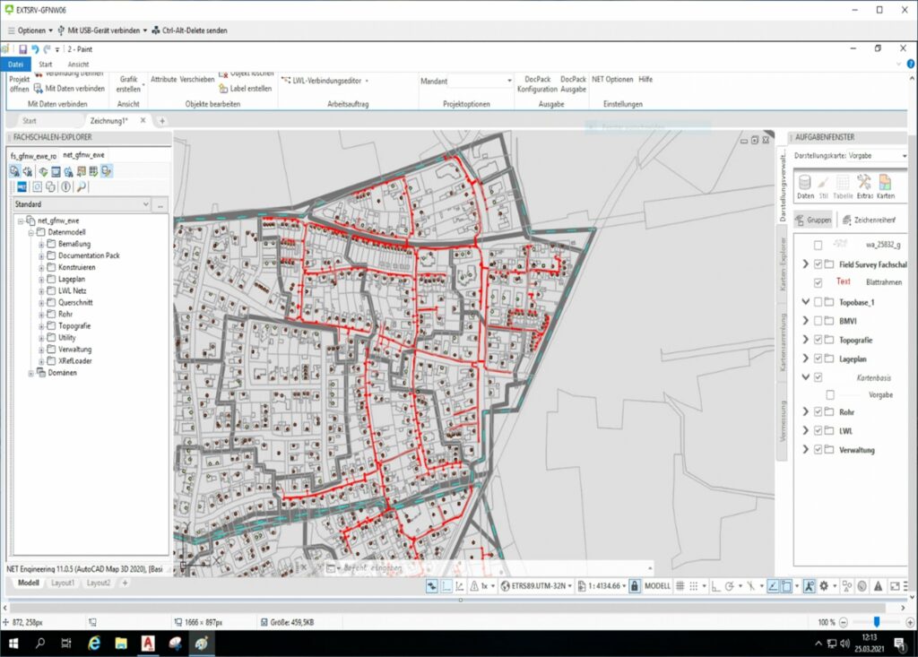 Das Geografische Informationssystem oder kurz Geoinformationssystem (GIS) ist heute die Grundlage aller Planungen im öffentlichen Raum. Wer Ver- und Entsorgungsnetze betreibt und weiterentwickelt benötigt aktuelle Daten seines Leitungsnetzes. Ein aktueller GIS-Datenbestand ist die Voraussetzung für effektive Planungen zu Investitionen in die Infrastruktur und schützt vor Planungsfehlern und Schäden bei Baumaßnamen. Die Basis eines GI Systems ist in der Regel das ALKIS oder die ALK.
